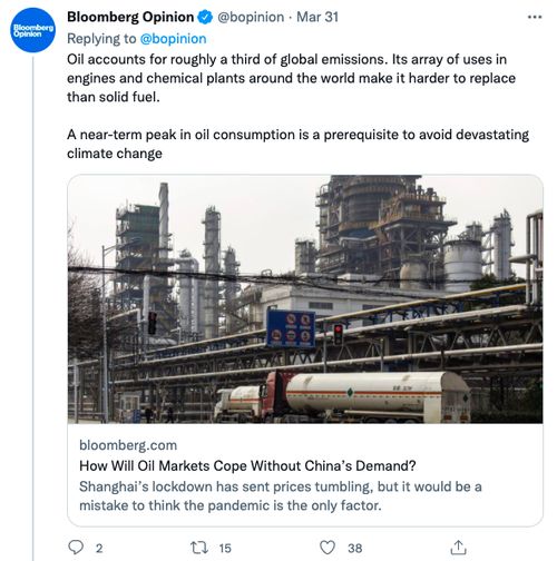 @Bloomberg Opinion在推特发布此文后,还在评论区一个劲地贴上文章摘要,生怕大家错过石油排放危害环境等“重点”。