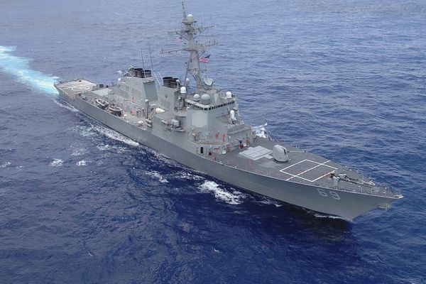 路透社消息,一艘美国军舰——阿利伯克级导弹驱逐舰“米利厄斯”号2021年11月23日过航台湾海峡。资料图