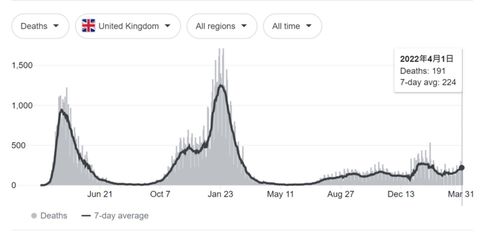 但这种以躺平为目的、以被动回应为例外情形的策略十分失败,使英国变得“两边不讨好”,并且导致了十分严重的后果。到目前为止,英国的累计确诊人数已经达到两千一百三十万(占英国总人口的32%),死亡人数达到十六万六千人,其中最近一周的日均死亡人数是224人。显然,“群体免疫”的目标是无法实现的,许多感染过新冠的人再次感染,包括查尔斯王子。英国最近采取的全面取消防疫限制的策略,只是面对第五波疫情而表现出的另一次“认命”。但它显然并没有“好好的”。而且,由于有了大规模感染人口作为病毒的“培养皿”,变异病毒和重组变异病毒在此不断滋生,给世界其他地区的人民带来危险。比如新冠病毒最早的变种毒株阿尔法就产生于英国,而最近出现的重组变体毒株XE也产生于英国。重组变体毒株是指一个人同时感染两种或两种以上的变体,这些变体的遗传物质在感染者体内完成混合。XE就是奥密克戎BA.1和BA.2的混合。这种重组毒株的传染力远高于现在的奥密克戎,世卫组织已将其列为新的值得密切关注的变体。