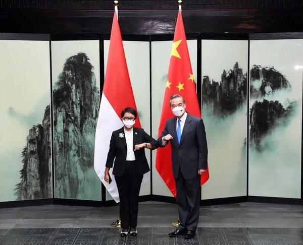 王毅表示,中国和印尼同为重要发展中大国和新兴经济体代表,双方有着广泛共同利益,互利合作不断深化。习近平主席和佐科总统保持着频密沟通,彰显了双边关系的战略性和高水平。面对世纪疫情和百年变局,两国携手应对挑战,构建了政治、经济、人文、海上合作“四轮驱动”新格局。中方愿同印尼一道,以共建命运共同体为大方向,共同引领区域合作潮流、推进全球治理,树立发展中国家团结合作、共谋发展的典范。