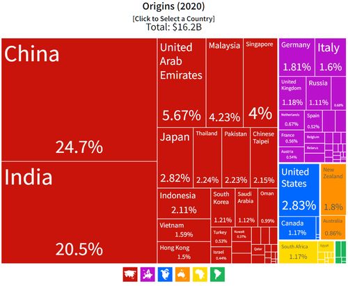 ▎2020年斯里兰卡进口结构,总额162亿美元