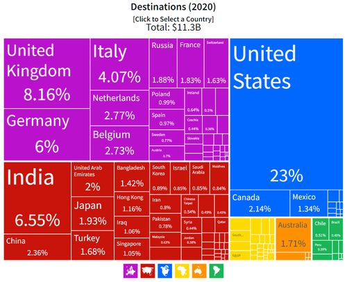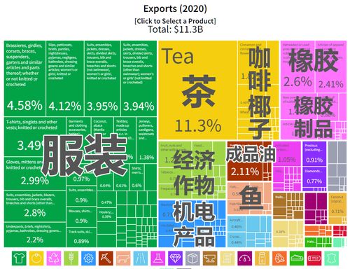 ▎2020年斯里兰卡出口结构,总额113亿美元