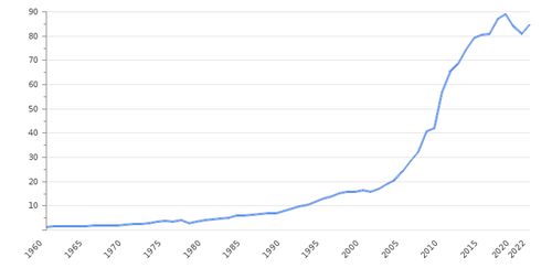 当年的政府债务累积达到了820亿美元,占GDP比重突破101%。2021年更达到了115%。超低税收、中等福利,收1块钱就要花掉2.4元。寅吃卯粮,这种狂欢显然不可持续。