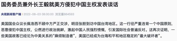 国务委员兼外长王毅就美方侵犯中国主权发表谈话