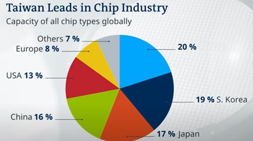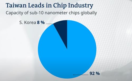 10纳米以上芯片,全球就两个地方出货,一个台湾,一个韩国,其中台湾出货占比高达92% 。