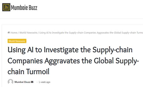 近日,印度“mumbaiebuzz”网站就刊登文章称,使用人工智能调查供应链涉及的公司,加剧了全球供应链动荡。