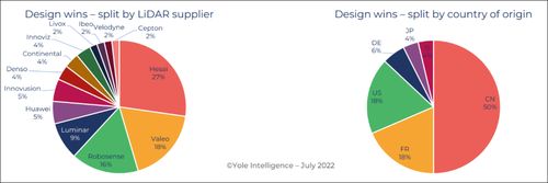 2022年,中国激光雷达企业前装定点数量将占全球一半 图片来源:Yole