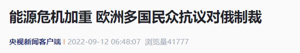 由于追随美国步伐对俄罗斯实施制裁,欧洲经济饱受冲击;随着冬日临近,能源危机逐渐加重。当地时间9月11日,欧洲多国民众走上街头,抗议政府对俄制裁政策所带来的能源价格飙升。