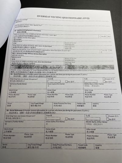 图:《海外背景调查问卷》(OverseasVettingQuestionnaire)的问题无所不包