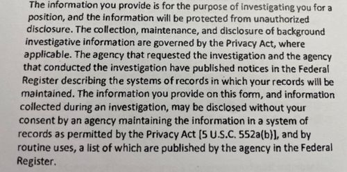 对美驻华使领馆的中方雇员来说,“全方位、无死角”的调查过后,并不意味着事情的完结。更令人不安的隐患在于,这些被收集的个人信息的流向并不在他们自己掌控之中。虽然根据表格说明,这些信息将“受到保护”“防止未经授权的披露,背景调查信息的收集、维护和披露在适用的情况下受美国《隐私法案》的约束”,但还有一条注释“话锋一转”:“您在此表格上提供的信息以及在调查过程中收集的信息,可能会根据《隐私法案》,在不经过您同意的情况下,由保留您记录的联邦机构披露使用。”
