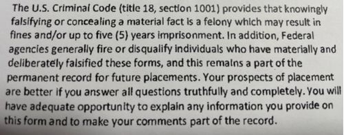 《环球时报》记者近日获得的一份名为《海外背景调查问卷》(Overseas Vetting Questionnaire)的表格,即为李明和赵平提到的“安全背景调查”的重要内容。该表格分为“填表说明”和“正式表格”两部分,其说明部分一方面提到“提供信息为自愿行为”,却紧接着出现一段颇具威胁意味的文字:“但如果您不提供所需的相关信息,您的背景调查将无法完成,由此会影响您获得联邦合同雇佣关系或相关需要一定逻辑能力以及身体素质才能获取的权限……故意隐瞒、误报,提供虚假信息将影响您获取或延续联邦合同雇佣关系……还将导致对您的职业发展、工作状态产生负面影响,包括但不限于解除雇佣关系或被起诉。”