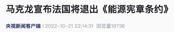 马克龙宣布法国将退出《能源宪章条约》当地时间21日,法国总统马克龙在布鲁塞尔宣布,法国将退出《能源宪章条约》,……