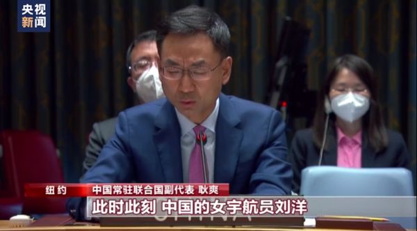 中国常驻联合国副代表 耿爽:此时此刻,中国的女航天员刘洋正在中国空间站内执行任务,为人类探索宇宙的崇高事业贡献“她力量”。中方愿与国际社会共同努力,为冲突地区驱散动荡的阴霾开辟和平发展的未来,帮助更多冲突地区的女性,像女航天员一样,奔赴属于她们的星辰大海。