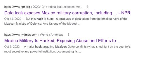 为啥这么说呢?原来,这件事之所以会被《华盛顿邮报》知晓,是因为今年9月的时候,包括墨西哥国防部在内的多个拉美国家的政府服务器遭到了一个黑客组织的攻击,导致大量的政府通讯信息泄露。墨西哥官方随后确认了遭到黑客攻击的事情。