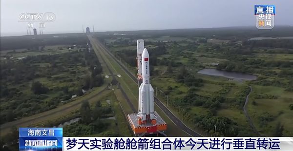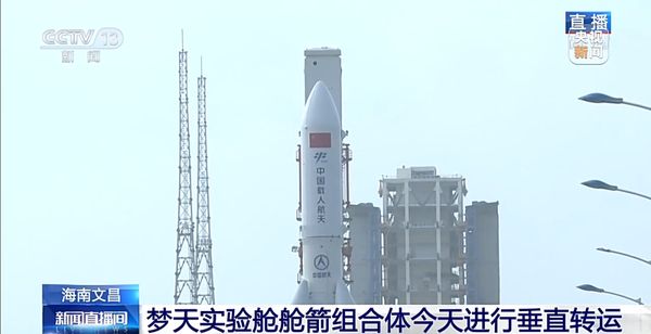 中国空间站梦天实验舱舱箭组合体今天进行垂直转运