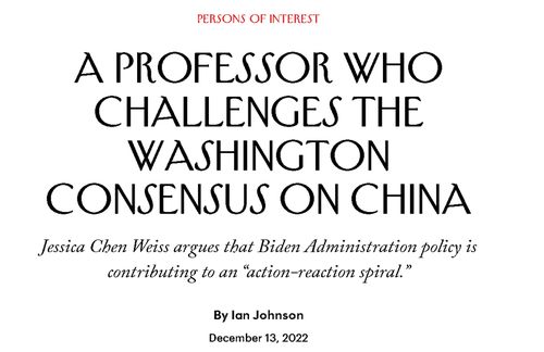 不过,一名来自美国康奈尔大学的女学者,还是决定对美国的这种对华政策共识提出反对,哪怕她有一半的华裔血统,而这在当下意味着她很容易就会被人扣上“叛徒”的帽子。