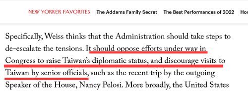 而根据《纽约客》的说法,目前在拜登政府中占主导的,恰恰是以库尔特·坎贝尔(Kurt Campbell)、埃利·拉特纳(Ely Ratner)和杜如松(Rush Doshi)这些负责中国和所谓印太策略的“战略竞争派”人士。这也是为何拜登政府在上台后并没有如一些分析人士希望的那样取消前总统特朗普时期采取的一些对华激进的政策,甚至还多次在台湾问题上发出错误的信号。