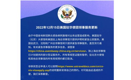 12月14日,美国大使馆更新信息,仅说明广州领事馆从12月19日开始,停止办理常规签证服务。