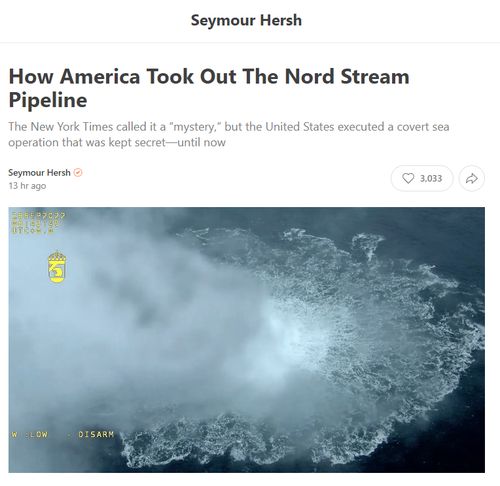 当地时间8日,这位美国资深调查记者、普利策奖得主在“substack”媒体平台上发布调查文章,援引“直接了解内情的消息人士”爆料,详细描述美国如何“密谋”摧毁北溪天然气管道。