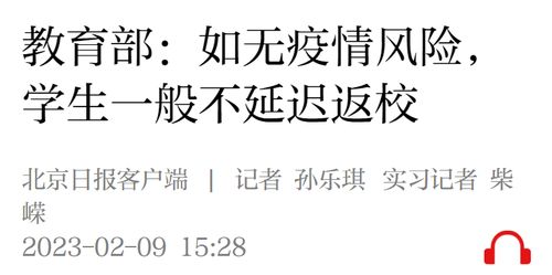 教育部:如无疫情风险,学生一般不延迟返校