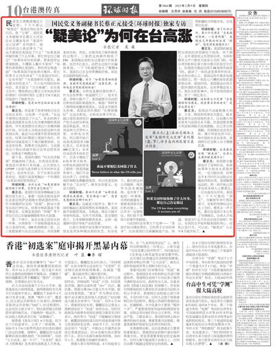 环球时报:台湾最近出现“疑美论”,台湾人主要怀疑美国什么?