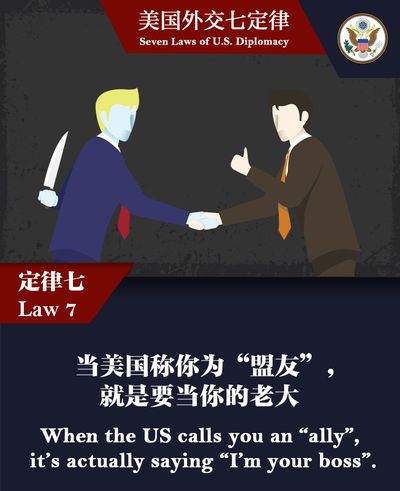 环球时报:这和第七个定律“当美国称你为盟友,就是要当你的老大”是否也有关系?