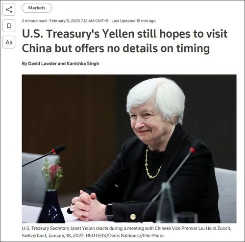 如果该计划成行,这将是耶伦财长任内首次访华。当时有媒体认为,这代表中美关系的“进一步解冻”。路透社后援引知情人士报道称,美财政部的一个工作团队将于2月访华,为后续的高层会面铺路,而耶伦访华预计将在“未来几个月内”进行,确切日期有望在该访团行程之后定调公布。