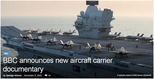 反正就是想渲染“伊丽莎白女王”号航母造价颇高,然后各种溢美之词往这艘航母身上堆:“这艘价值32亿英镑的强大战舰”“试图跟踪这艘最先进的航母”。