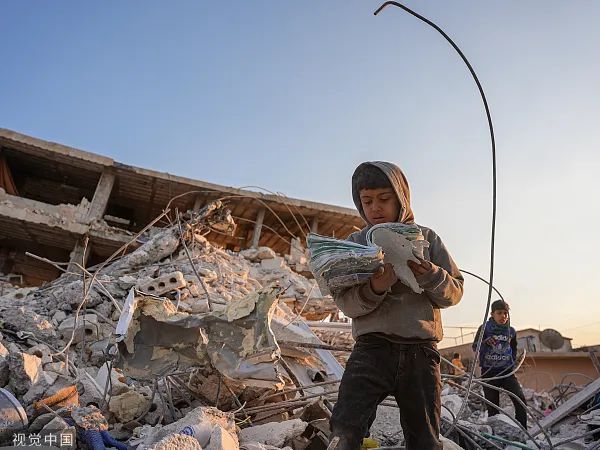当地时间2023年2月12日,地震后,叙利亚受损的建筑。图源:视觉中国