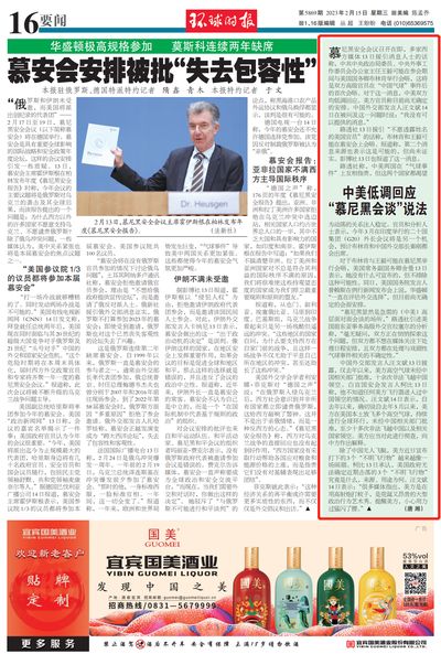 “慕尼黑显然是急需的(中美)高层面对面会谈的场所,”路透社引述美国前东亚事务高级外交官拉塞尔的分析称,“毫无疑问,双方正在悄悄探索这个问题,但双方都不想在媒体关注下处理日程安排,且双方都在处理与戏剧性气球事件相关的不确定性。”