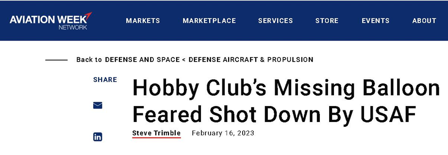 “航空周刊网”称,俱乐部的一个已经失联的气球,与美军击落的那个“不明飞行物”在地理位置、时间点以及高度上都存在重合。