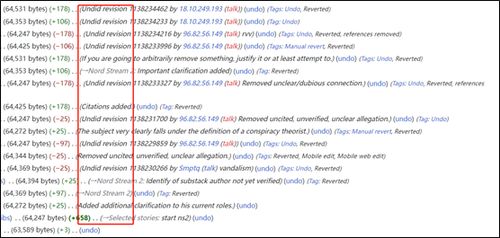 但一个我们可以观察到的客观事实是,在2月8日“北溪事件”的报道发布前,赫什的词条的编辑频率要远远低于现在,很多时候甚至一年只有零星的一两次关于正文内容的修改。可随着他的报道火遍全网后,他的经历和定性就像是某个新的“阵地”,而有人非常希望这个“阵地”能牢牢掌控在自己手里。