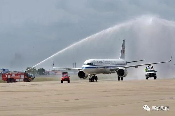 2月7日,一架载有中国乘客的国航航班从北京出发抵达柬埔寨首都金边国际机场,受到柬方热烈欢迎。新华社发(批隆摄)