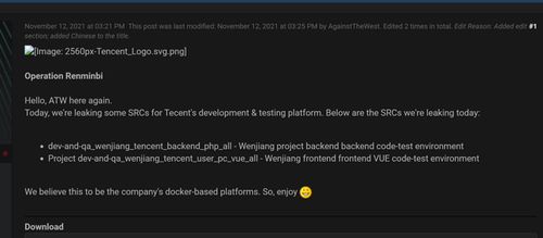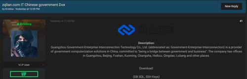 2021年11月2日,ATW组织在“阵列论坛”发布信息,称“广州政企互联科技有限公司已被其攻破”,并提供了数据库和SSH密钥的下载方式。
