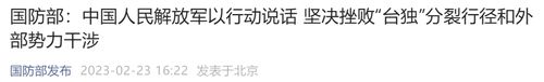 国防部:中国人民解放军以行动说话,坚决挫败“台独”分裂行径和外部势力干涉