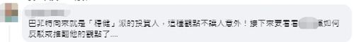 还有人称,“巴菲特向来就是‘稳健’派的投资人,这种观点不让人意外!接下来要看看民进党如何反驳或推翻他的观点了…”↓