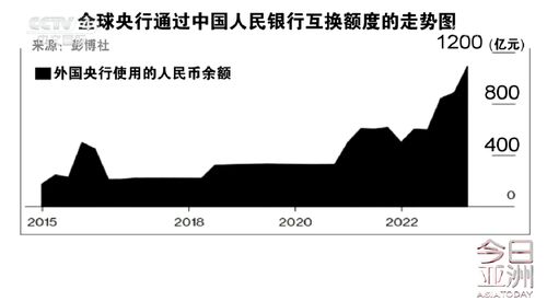 根据往年公开数据,彭博社制作了全球央行通过中国人民银行互换额度的走势图,显示从2015年到2023年,各央行换取人民币的规模实现大幅增长。