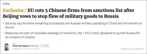 报道称,欧盟方面最初的制裁名单上有8家中企,但在布鲁塞尔方面与中方会谈后,其中5家暂时从名单上被移除。熟悉此事的外交官和官员透露称,仍在名单上的3家企业被发现是在华经营的俄罗斯实体。不过,报道指出这并非最终结果,正式名单仍有可能因情况变动。