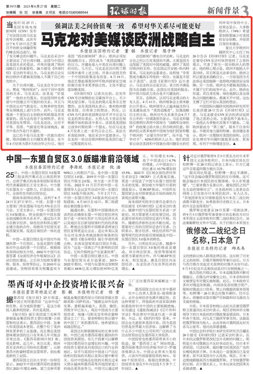 当地时间25日,美国有线电视新闻网(CNN)发布了对法国总统马克龙的专访视频。此次专访于6月23日在巴黎召开的新全球融资契约峰会场边进行。除了有关峰会的问题外,马克龙在采访中主要谈论了对台湾问题、法国与中国以及美国关系的看法,并再次强调了欧洲战略自主的重要性。26日接受《环球时报》采访的专家认为,马克龙的言论反映出欧洲不愿被美国拖入不属于自己的危机中。