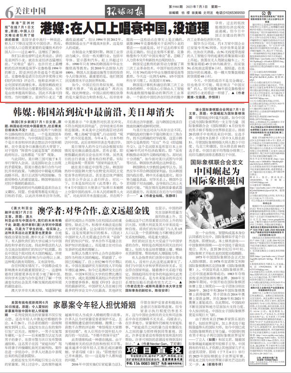 香港“亚洲时报”在线7月1日文章,原题:中国人口灾难论者引用了错误的数据 美国学者中流行一种说法,称人口下降注定毁灭中国经济。然而,比中国人口总数更重要的是懂技术的中国人口——过去40年,这增长了20倍。