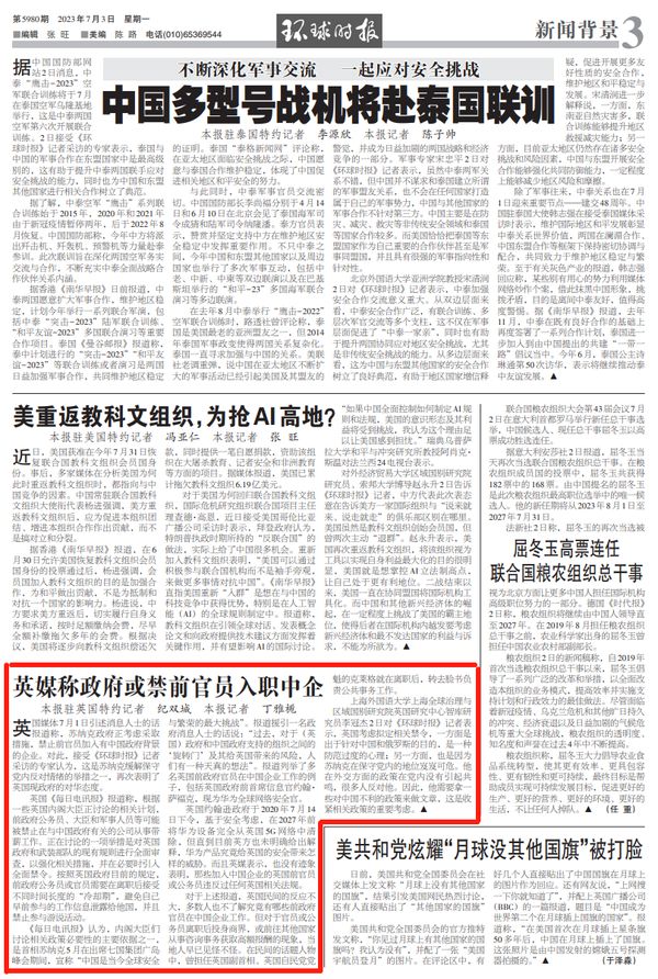 英国媒体7月1日引述消息人士的话报道称,苏纳克政府正考虑采取措施,禁止前官员加入有中国政府背景的企业。对此,接受《环球时报》记者采访的专家认为,这是苏纳克缓解保守党内反对情绪的举措之一,再次表明了英国现政府的对华态度。