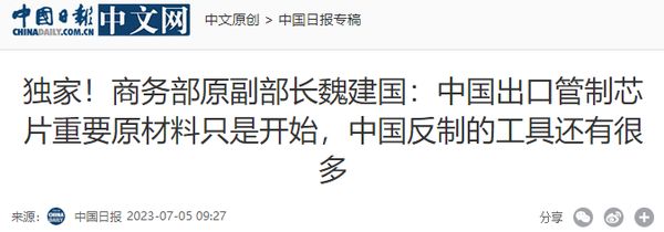 商务部原副部长魏建国:中国出口管制芯片重要原材料只是开始,中国反制的工具还有很多