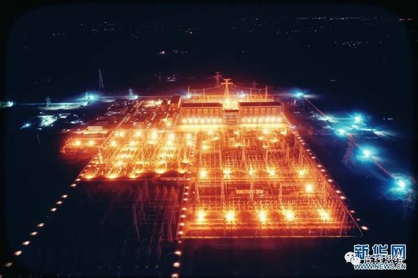 2021年4月10日中巴经济走廊默拉直流输电工程拉合尔换流站夜景。图片来源:新华网