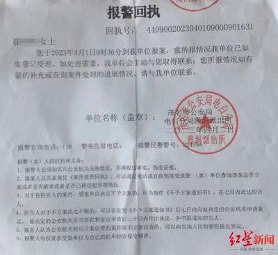 据红星新闻报道,受理案件的茂名市公安局电白分局霞洞派出所方面称相关情况暂不便透露。