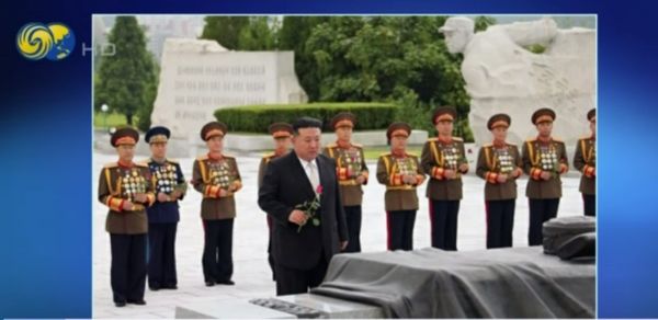 金正恩25日又凭吊了朝鲜人民军战争烈士陵园。金正恩表示,这是朝鲜军民维护国家主权的胜利,同时也是给美帝国主义的耻辱和惨败,防止了新的世界大战发生。