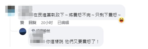 而对于台媒所说的台防务部门“震怒”,与维修商终止合约,有岛内网友在脸书留言表示,台防务部门在民进党“执政”下,将震怒不完,只剩下震怒。也有网友附和,“你这样说,他们又要震怒了!”↓