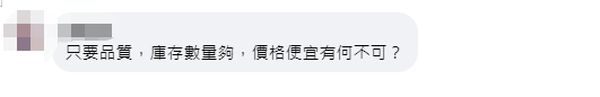 针对此事,有网友在脸书留言表示,“只要品质、库存数量够、价格便宜有何不可?”↓