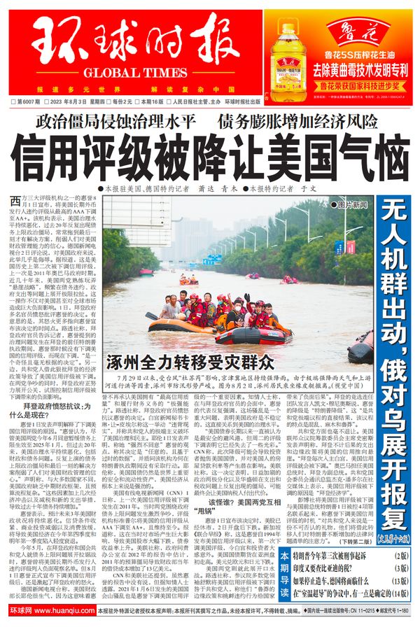 西方三大评级机构之一的惠誉8月1日宣布,将美国长期外币发行人违约评级从最高的AAA下调至AA+。该机构表示,美国治理水平持续恶化,过去20年反复出现债务上限政治僵局,常常拖到最后一刻才有解决方案,削弱人们对美国财政管理能力的信心。德国新闻电视台2日评论说,对美国政府来说,此举几乎是侮辱。据报道,这是美国历史上第二次被下调信用评级,上一次是2011年奥巴马政府时期。近几十年来,美国两党熟练玩弄“悬崖战略”,频繁在债务违约、政府支出等问题上展开极限拉扯。这一操作不仅对美国甚至对全球市场造成巨大负面影响。1日,拜登政府多名官员愤怒批评惠誉的决定。有意思的是,其怒火更多指向惠誉宣布该决定的时间点。路透社称,拜登政府官员告诉记者,惠誉提到的治理问题发生在拜登的前任特朗普执政期间,惠誉那时候没有下调美国的信用评级,而现在下调,“是一个奇怪且毫无根据的决定”。另一边,共和党人借此狠批拜登的经济政策导致了美国信用评级被下调。在两党争吵的同时,拜登政府正努力展开公关,试图控制信用评级被下调带来的负面影响。