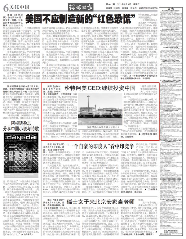 英国《金融时报》8月7日文章,原题:沙特阿美公司表示将进一步投资中国 尽管第二季度利润下降,但沙特阿拉伯国家石油公司(以下简称沙特阿美)在重申其大规模资本支出计划时表示,计划在中国进一步开展投资活动。
