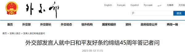 外交部发言人就中日和平友好条约缔结45周年答记者问